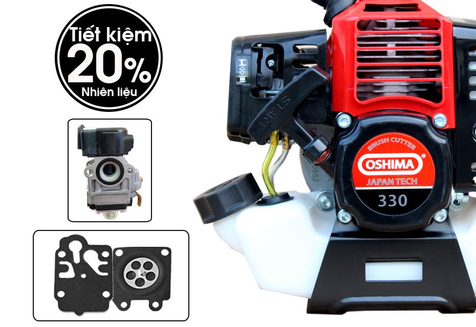 Máy cắt cỏ Oshima 330 Động cơ mạnh mẽ dễ khởi động - đáp ứng được nhu cầu làm việc, tuổi thọ máy cao và kéo dài thời hạn sử dụng khi phối hợp với công tác bảo quản, bảo trì